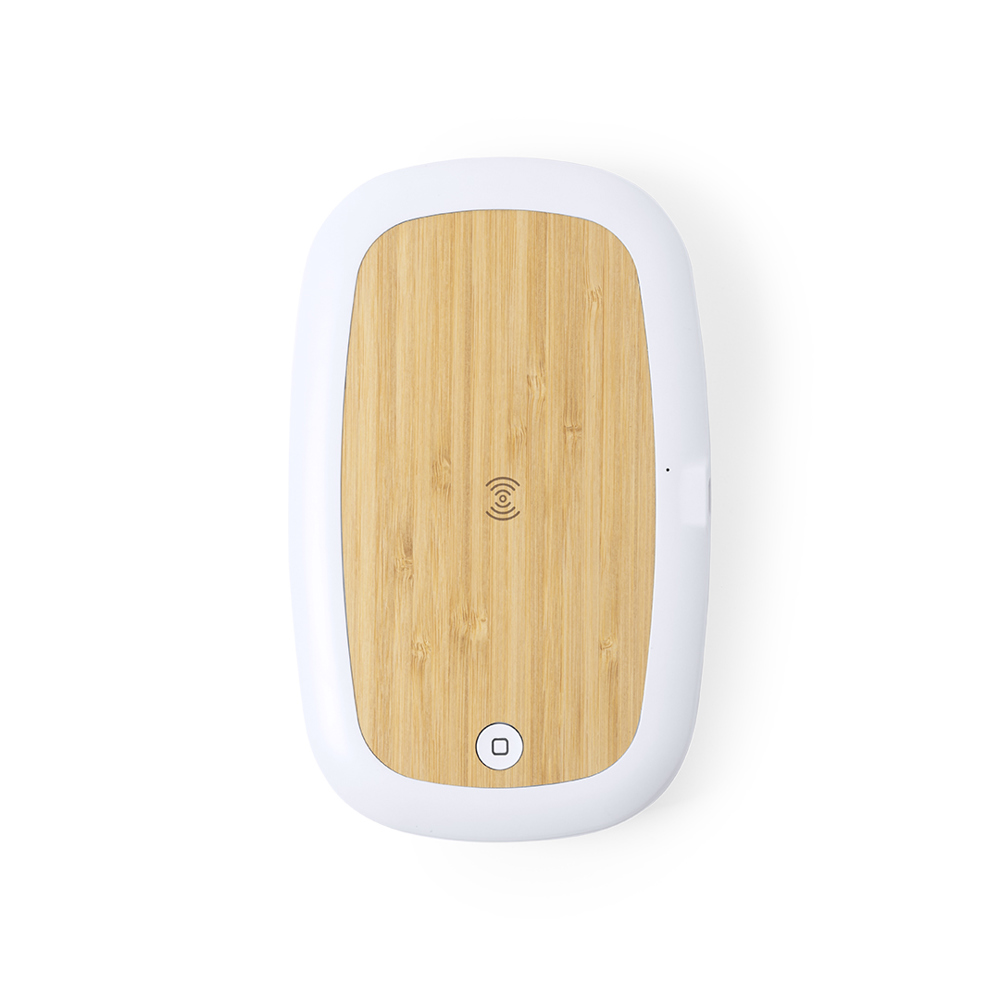 Natuurlijn sterilisator doos, met bamboe laadbodem. Ultraviolet licht type C, met draadloze 5W oplader voor smartphone geïntegreerd in deksel. Speciaal ontworpen voor de eliminatie van micro-organismen en bacteriën in voorwerpen van dagelijks gebruik, zoals de smartphone, sleutels, bril, masker, hoofdtelefoon, smartwatch ... Gemaakt van bestendig ABS materiaal met een matte afwerking en gepresenteerd in een aantrekkelijke individuele ontwerpdoos. Gemakkelijk te gebruiken, gewoon het voorwerp in de doos plaatsen. Lampvermogen 1W, golflengte 270-280 nm, met stroomvoorziening via 1 m lange Type C USB-kabel in bijpassende kleur. Sterilisatietijd van 5 en 10 minuten met auto-off functie. Gebruiksaanwijzing beschikbaar in het Spaans en Engels. CE, RoHS en kiemdodende doeltreffendheid certificering beschikbaar.