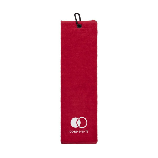 550 grams katoenen golfhanddoek in drieën gevouwen met karabijnhaak, formaat 13 x 50 cm