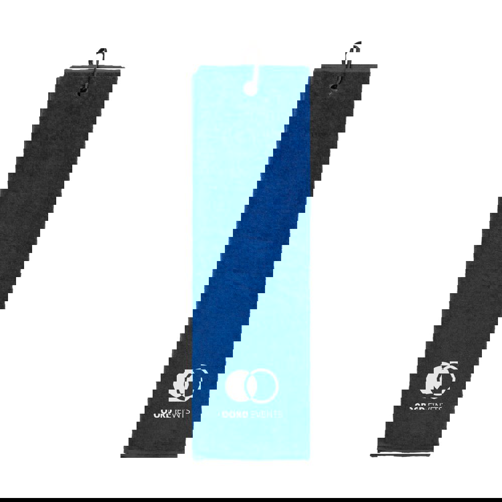 550 grams katoenen golfhanddoek in drieën gevouwen met karabijnhaak, formaat 13 x 50 cm