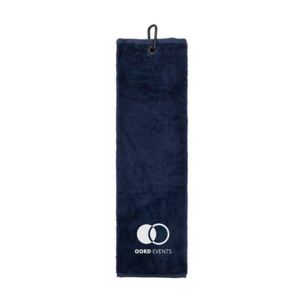 550 grams katoenen golfhanddoek in drieën gevouwen met karabijnhaak, formaat 13 x 50 cm