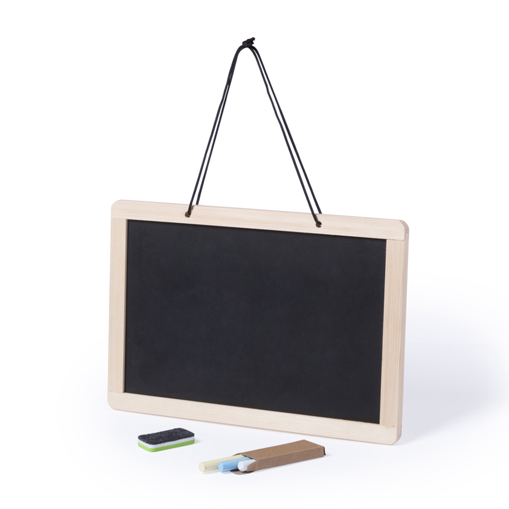 Dubbelzijdig, hangend bord. Traditioneel bord aan de ene kant met 3 krijtjes inclusief een whitebord aan de andere kant -marker inbegrepen-. Met dubbelzijdige wisser voor krijt of markeerstift.