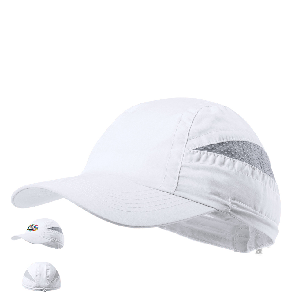 Sportieve pet met 7 panelen van zacht microfiber met tweekleurig design in levendige kleuren. Elastische sluiting met passend accessoire en mesh-panelen voor ventilatie.