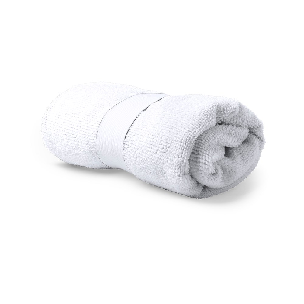 Ultra absorberende handdoek in XL-formaat in hoogwaardige stof -345 g / m2-. Afmeting 40x90 cm. Verkrijgbaar in een breed scala aan kleuren met een elastische band in witte kleur voor afdrukken.