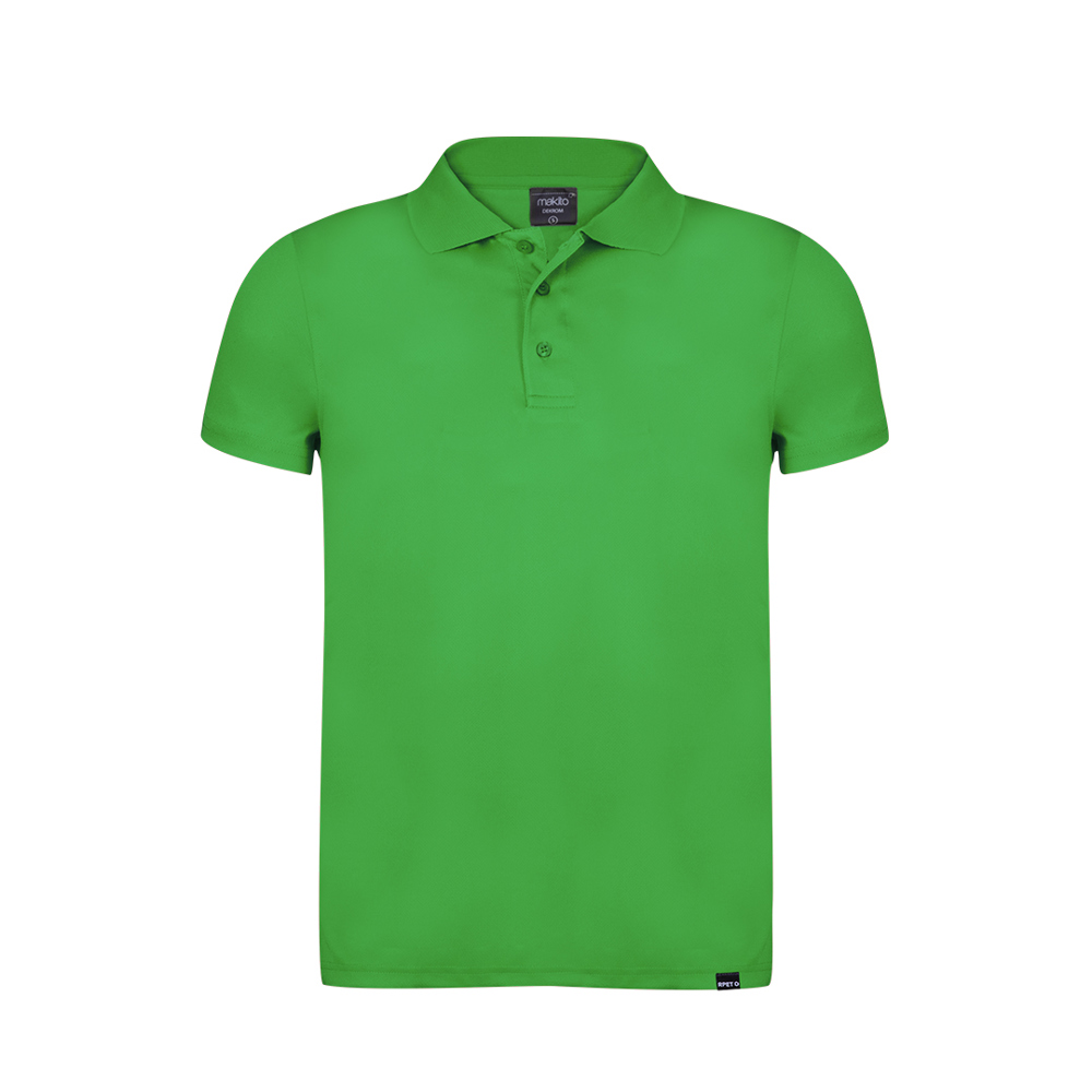 Ademend poloshirt van 100% polyester RPET materiaal van 180g/m2, gemaakt van gerecycled plastic om het hergebruik van plastic afval aan te moedigen en bij te dragen aan de duurzaamheid van de planeet. Met drie sluitknopen in bijpassende kleur en verkrijgbaar in een breed assortiment kleuren. Maten S, M, L, XL, XXL. Met RPET-label.