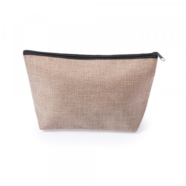 Multifunctionele make-uptas van polyester met tweekleurige afwerking en ritssluiting in verschillende kleuren en handvat in bijpassende kleur.