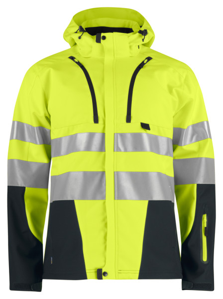 • wind- en waterafstotend en ademende softshell • met fleece gevoerde kraag • afneembare capuchon • ritssluiting aan de voorzijde die bedekt is met een flap• Deze stormflap kan afgesloten worden met drukknopen • twee schuinlopende, verticale borstzakken, de linker met telefoonzakje binnenin • twee zijzakken • één mouwzakje op linkermouw • lus voor badgehouder • ventilatiegaten onder de armen met ritssluiting • aanpasbare taille • aanpasbare manchetten • langer rugpand • reflecterende biezen op mouwen en rug