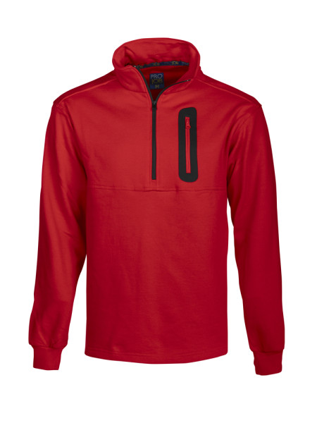 • sweater met korte ritssluiting • verticale borstzak • zijzakken met ritssluiting en verstevigd met softshell • ribboord aan de manchetten en boord onderaan