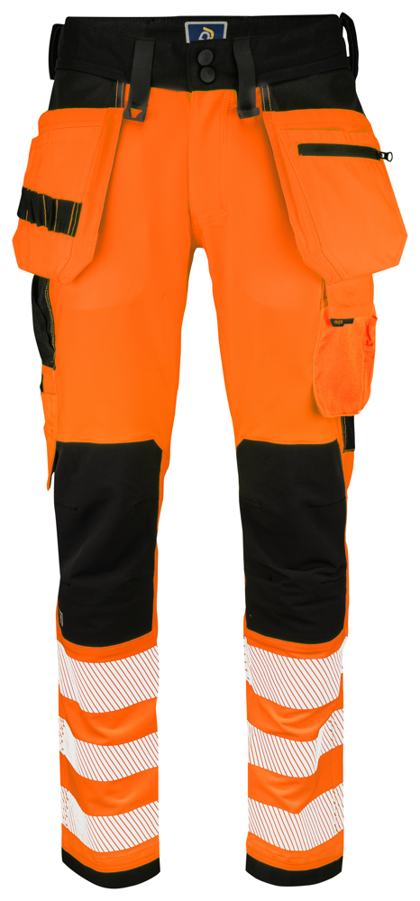 6573 SIGNALISATIESTRETCHBROEK MET KNIEZAKKEN EN SPIJKERZAKKEN EN ISO 20471 KLASSE 2 Oranje/Zwart D100