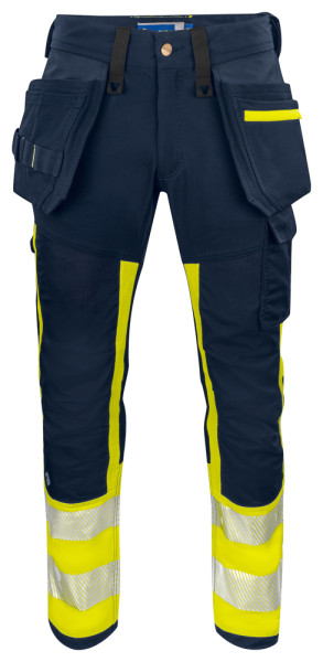 6540 SIGNALISATIESTRETCHBROEK MET KNIEZAKKEN EN SPIJKERZAKKEN EN ISO 20471 KLASSE 1 Geel/Marine D100