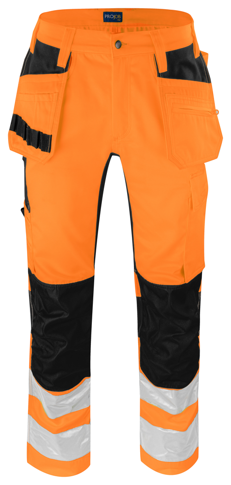 6570 SIGNALISATIE STRETCHBROEK MET KNIEZAKKEN EN SPIJKERZAKKEN EN ISO 20471 KLASSE 2 Oranje/Zwart D100
