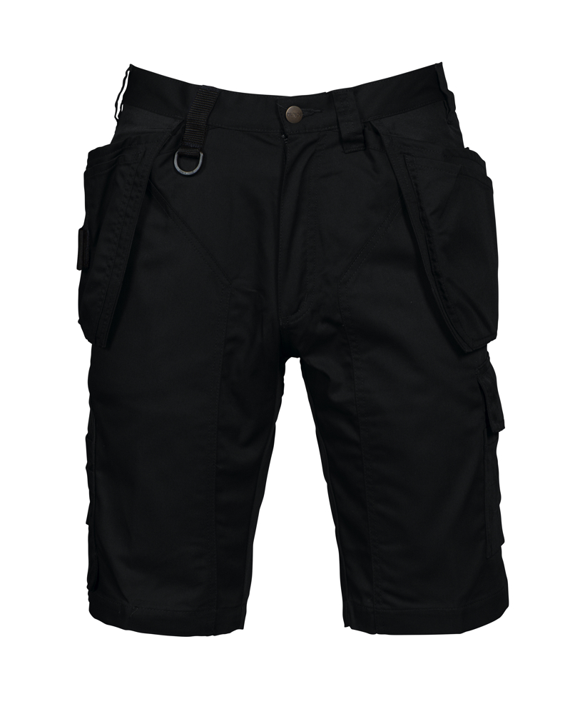 • twee zijbeenzakken: linker: ruimte voor telefoon, pennen, gereedschappen; rechter: twee aanpasbare hamerhouders, zak voor potlood, duimstokzak en mesknoop
